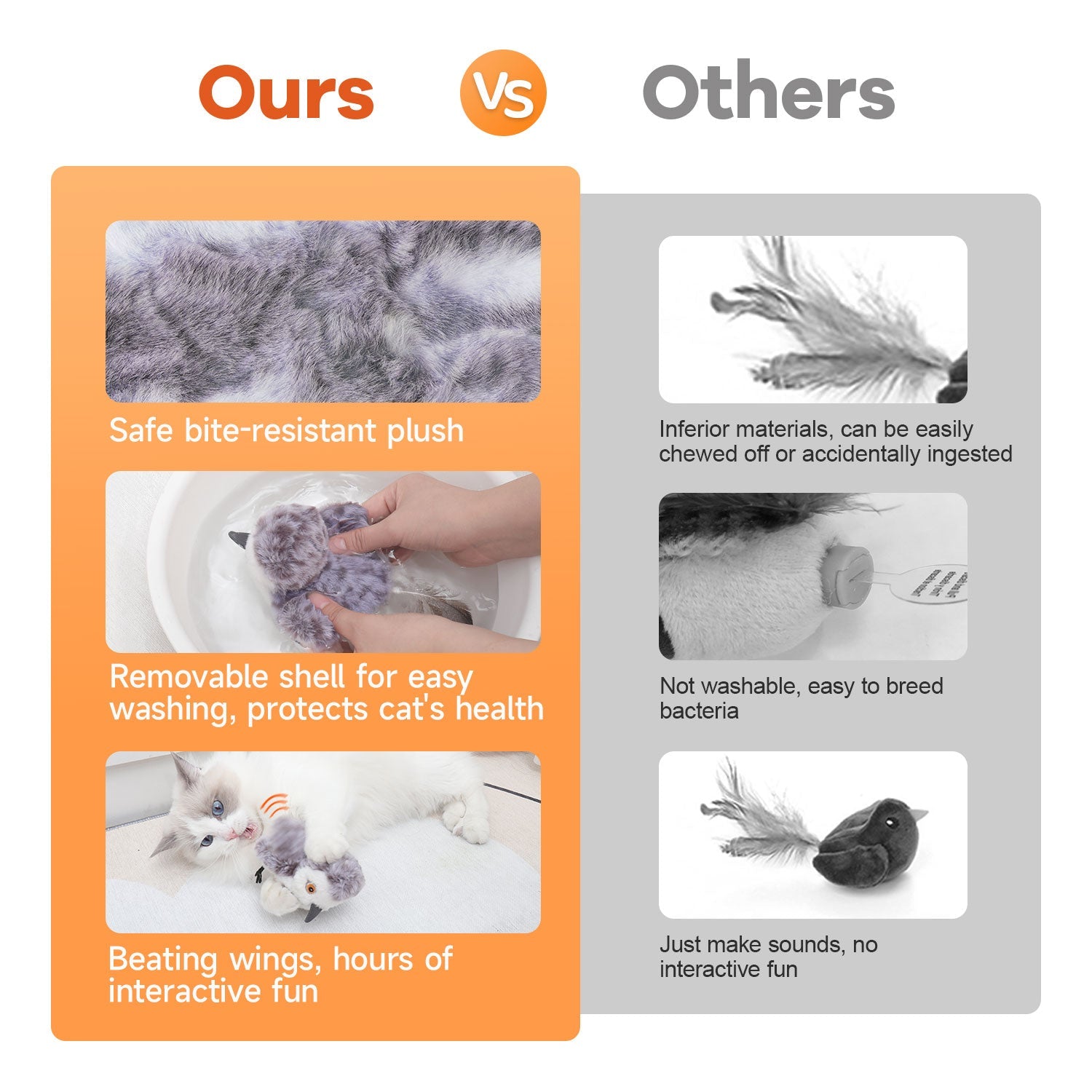 - Realistic Sandpiper Simulation: The beating wings cat toy looks like a real sandpiper, an eye-catcher for cats, keeping your kitty on her paws and engaged in real time, alleviating boredom and loneliness and promoting cat's exercise when you are away from home